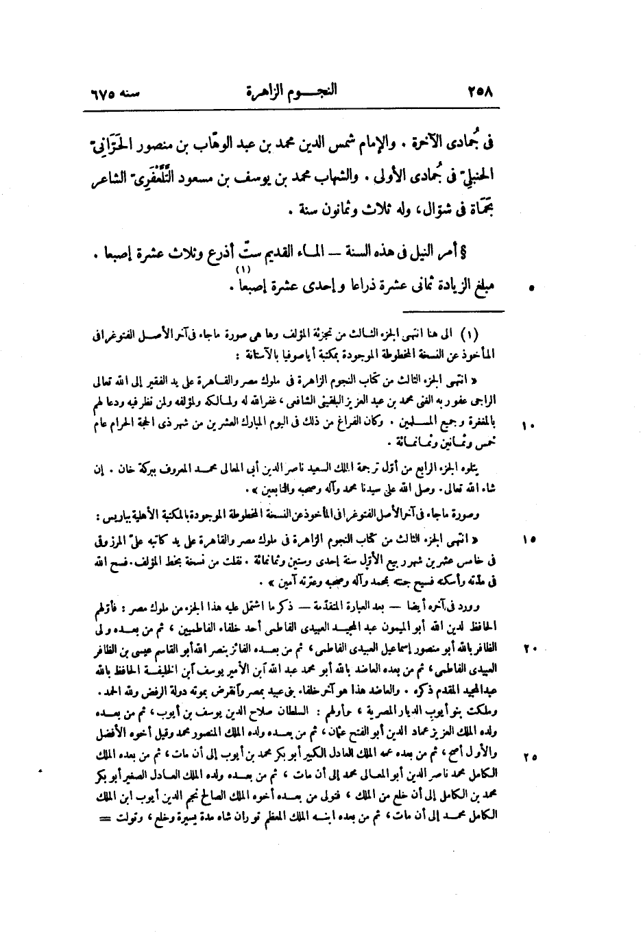 أمر النيل فى هذه السنة- الماء القديم ستّ أذرع وثلاث عشرة إصبعا.