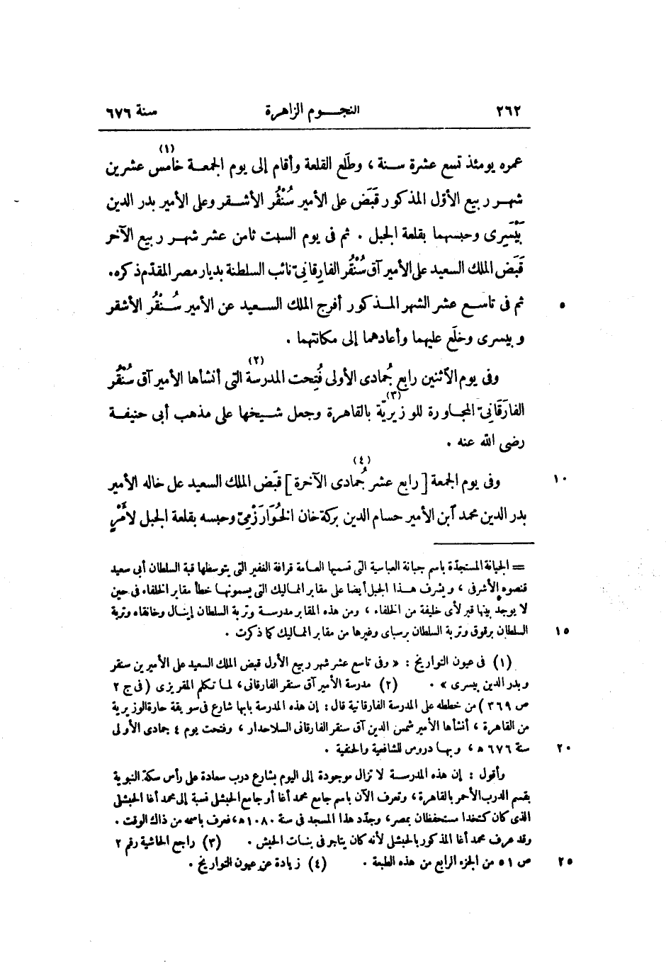 وفى يوم الجمعة [رابع عشر «4» جمادى الآخرة] قبض الملك السعيد على خاله الأمير بدر الدين محمد ابن الأمير حسام الدين بركة خان الخوارزمىّ وحبسه بقلعة الجبل لأمر