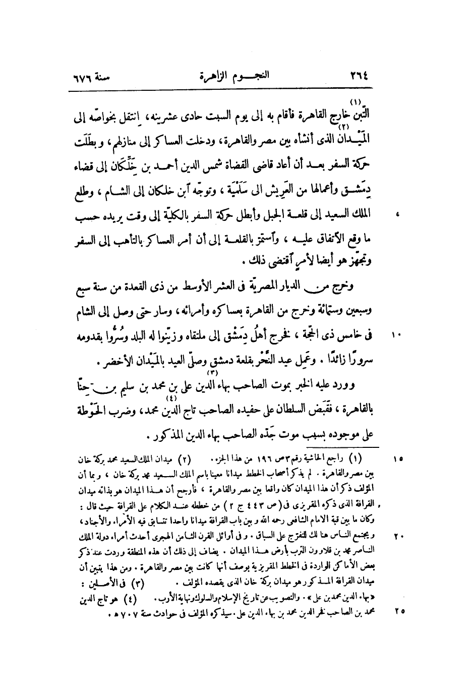 التّبن «1» خارج القاهرة فأقام به إلى يوم السبت حادى عشرينه، انتقل بخواصّه إلى الميدان «2» الذي أنشأه بين مصر والقاهرة، ودخلت العساكر إلى منازلهم، وبطلت حركة السفر بعد أن أعاد قاضى القضاة شمس الدين أحمد بن خلّكان إلى قضاء دمشق وأعمالها من العريش الى سلمية، وتوجّه ابن خلكان إلى الشام، وطلع الملك السعيد إلى قلعة الجبل وأبطل حركة السفر بالكليّة إلى وقت يريده حسب ما وقع الاتفاق عليه، واستمرّ بالقلعة إلى أن أمر العساكر بالتأهب إلى السفر وتجهّز هو أيضا لأمر اقتضى ذلك.