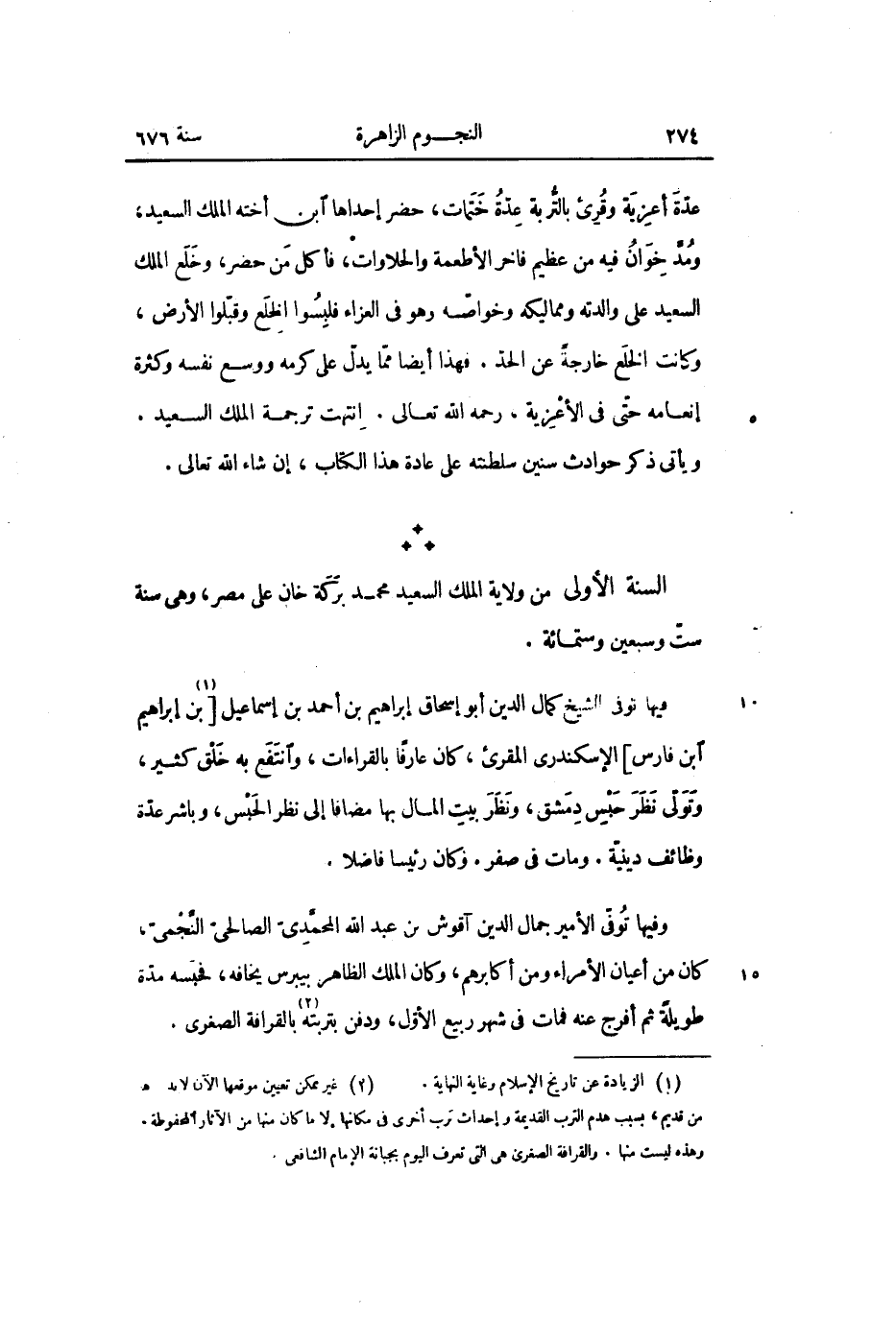 السنة الأولى من ولاية الملك السعيد محمد بركة خان على مصر، وهى سنة ستّ وسبعين وستمائة.
