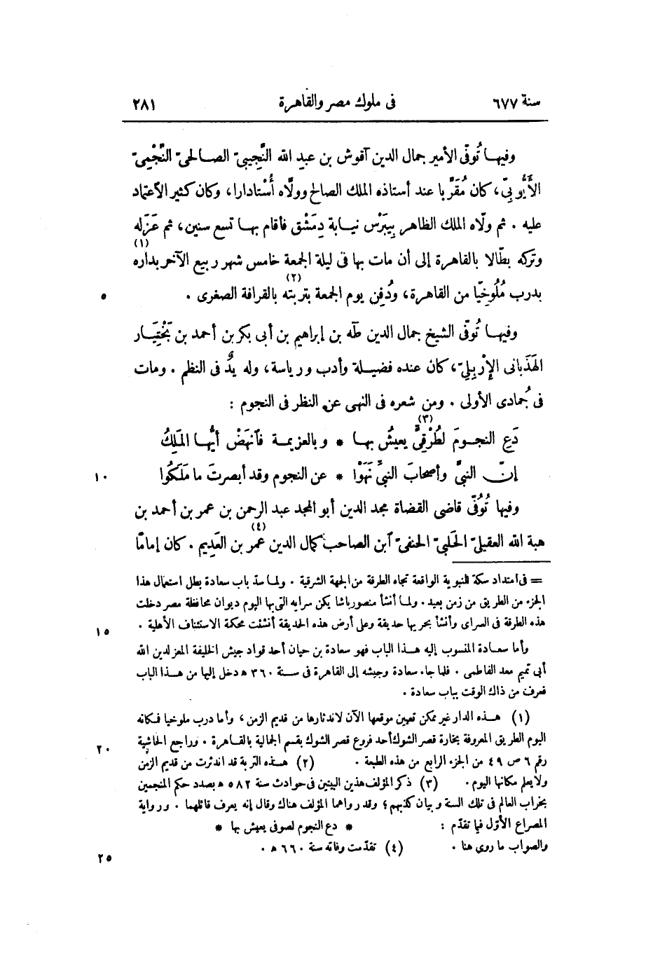 وفيها توفّى الشيخ جمال الدين طه بن إبراهيم بن أبى بكر بن أحمد بن بختيار الهذبانى الإربلىّ، كان عنده فضيلة وأدب ورياسة، وله يد فى النظم. ومات فى جمادى الأولى. ومن شعره فى النهى عن النظر فى النجوم: