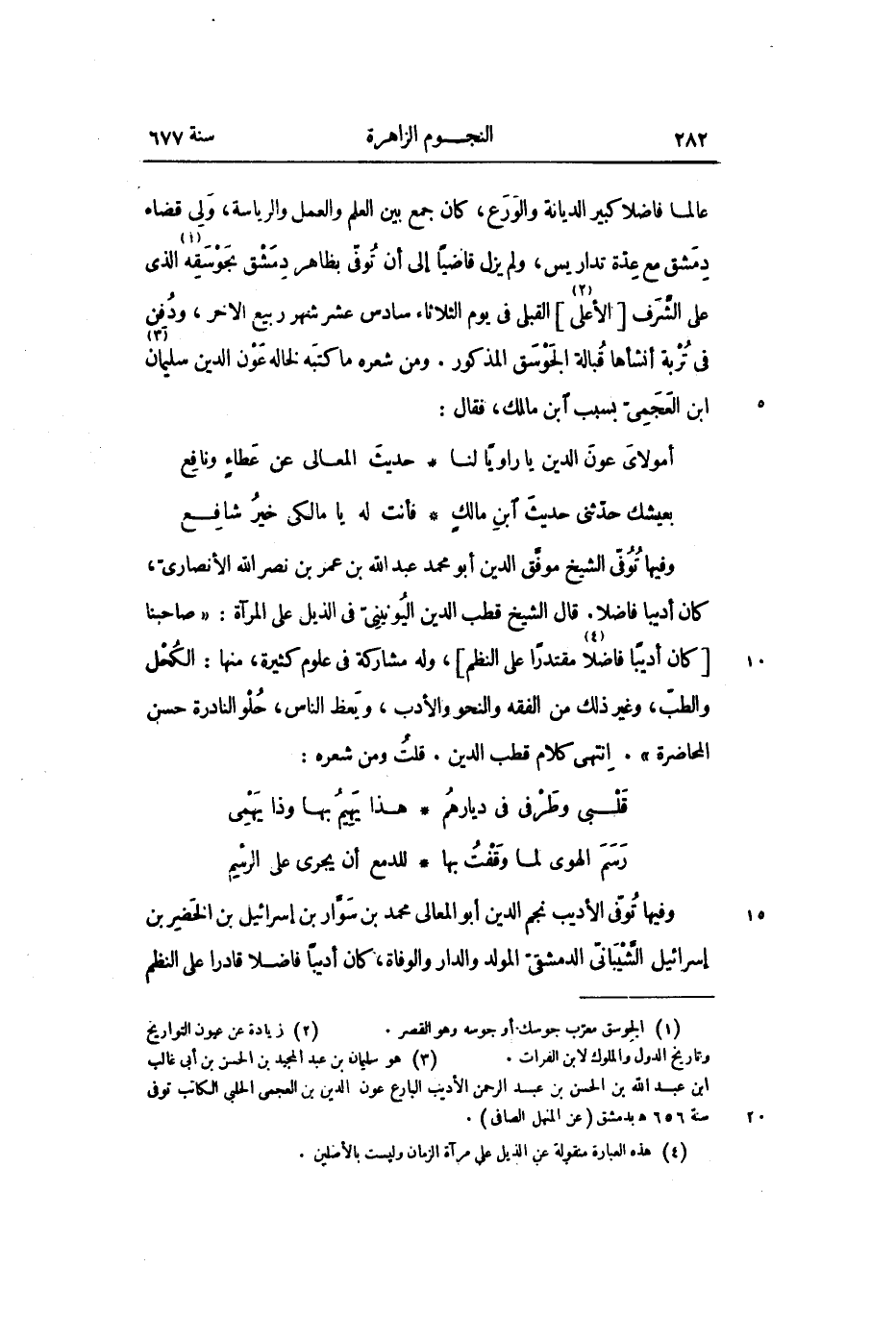 وفيها توفّى الأديب نجم الدين أبو المعالى محمد بن سوّار بن إسرائيل بن الخضر بن إسرائيل الشّيبانىّ الدمشقىّ المولد والدار والوفاة، كان أديبا فاضلا قادرا على النظم