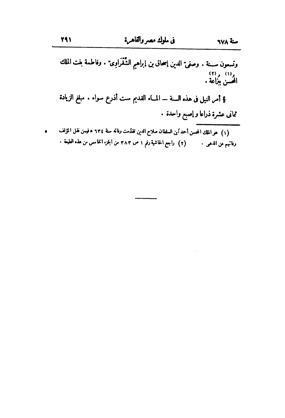 أمر النيل فى هذه السنة- الماء القديم ست أذرع سواء. مبلغ الزيادة ثمانى عشرة ذراعا وإصبع واحدة.