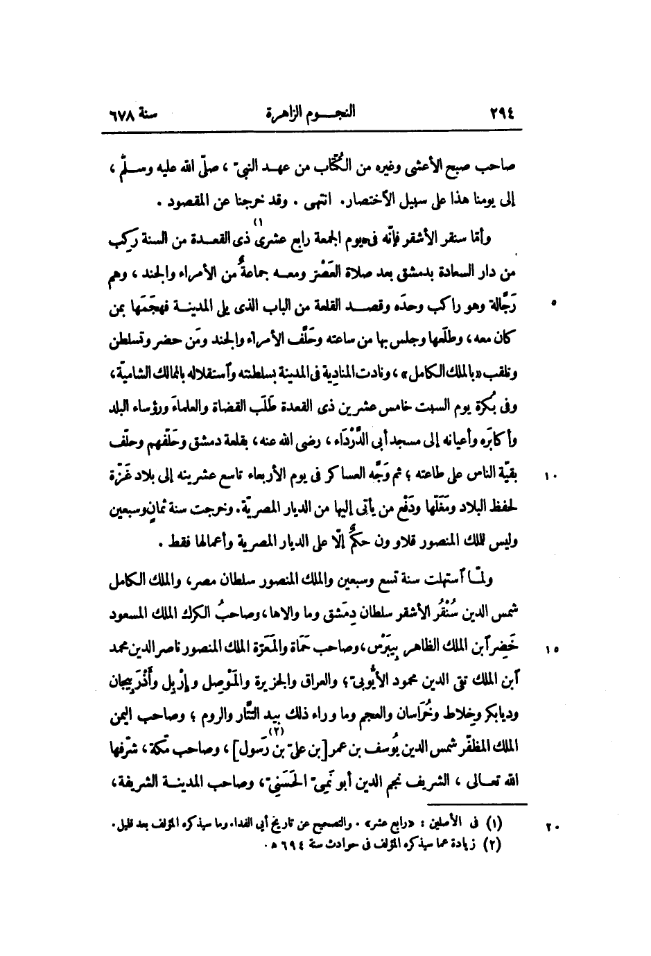 ولمّا استهلت سنة تسع وسبعين والملك المنصور سلطان مصر، والملك الكامل شمس الدين سنقر الأشقر سلطان دمشق وما والاها، وصاحب الكرك الملك المسعود خضر ابن الملك الظاهر بيبرس، وصاحب حماة والمعرّة الملك المنصور ناصر الدين محمد ابن الملك تقي الدين محمود الأيّوبىّ؛ والعراق والجزيرة والموصل وإربل وأذربيجان وديابكر وخلاط وخراسان والعجم وما وراء ذلك بيد التّتار والروم؛ وصاحب اليمن الملك المظفّر شمس الدين يوسف بن عمر [بن علىّ بن»