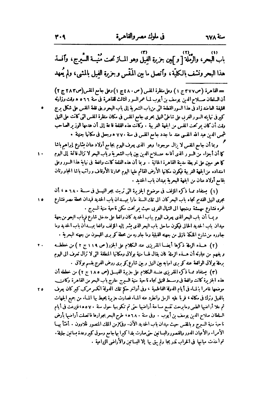 باب «1» البحر، والرّملة «2» [و] بين جزيرة الفيل «3» وهو المار تحت منية السّيرج، وانسدّ هذا البحر ونشف بالكلّية، واتصل ما بين المقس وجزيرة الفيل بالمشى، ولم يعهد
