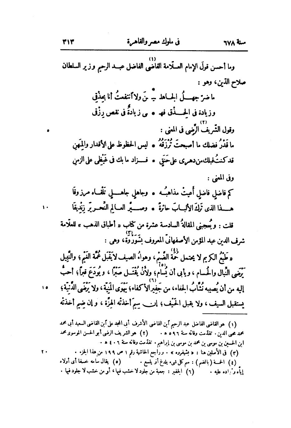 وما أحسن قول الإمام العلّامة القاضى «1» الفاضل عبد الرحيم وزير السلطان صلاح الدّين، وهو: