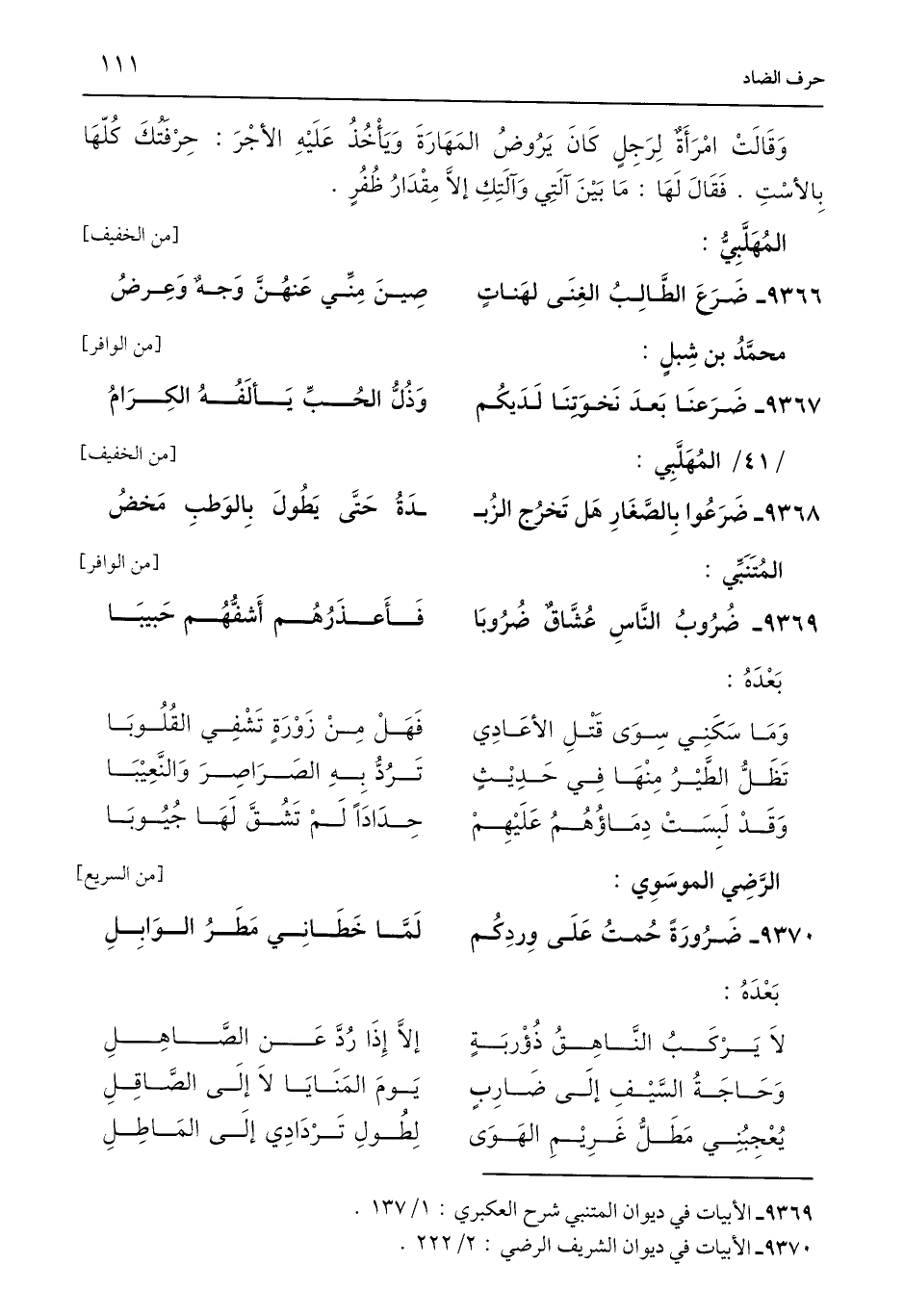 9369 - الأبيات في ديوان المتنبي شرح العكبري: 1/ 137.