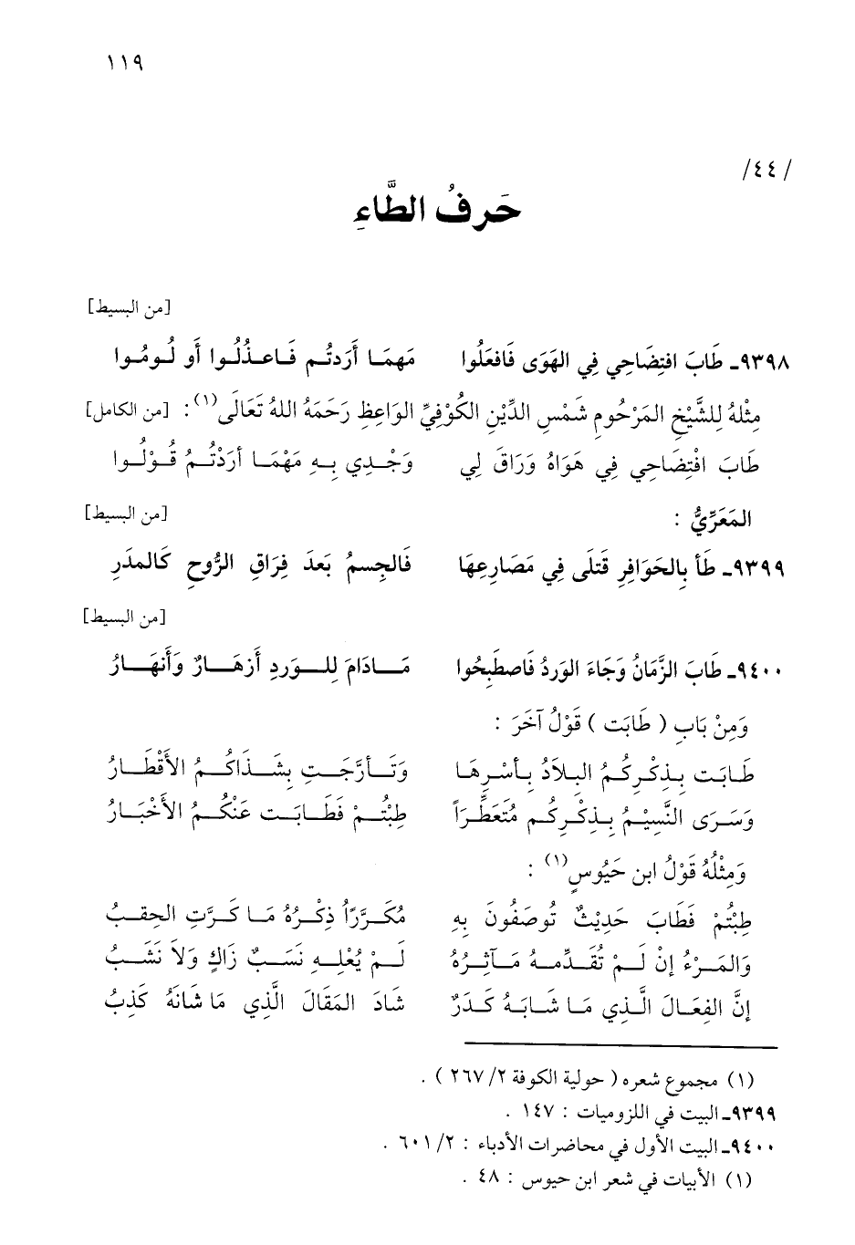 (¬1) مجموع شعره (حولية الكوفة 2/ 267).