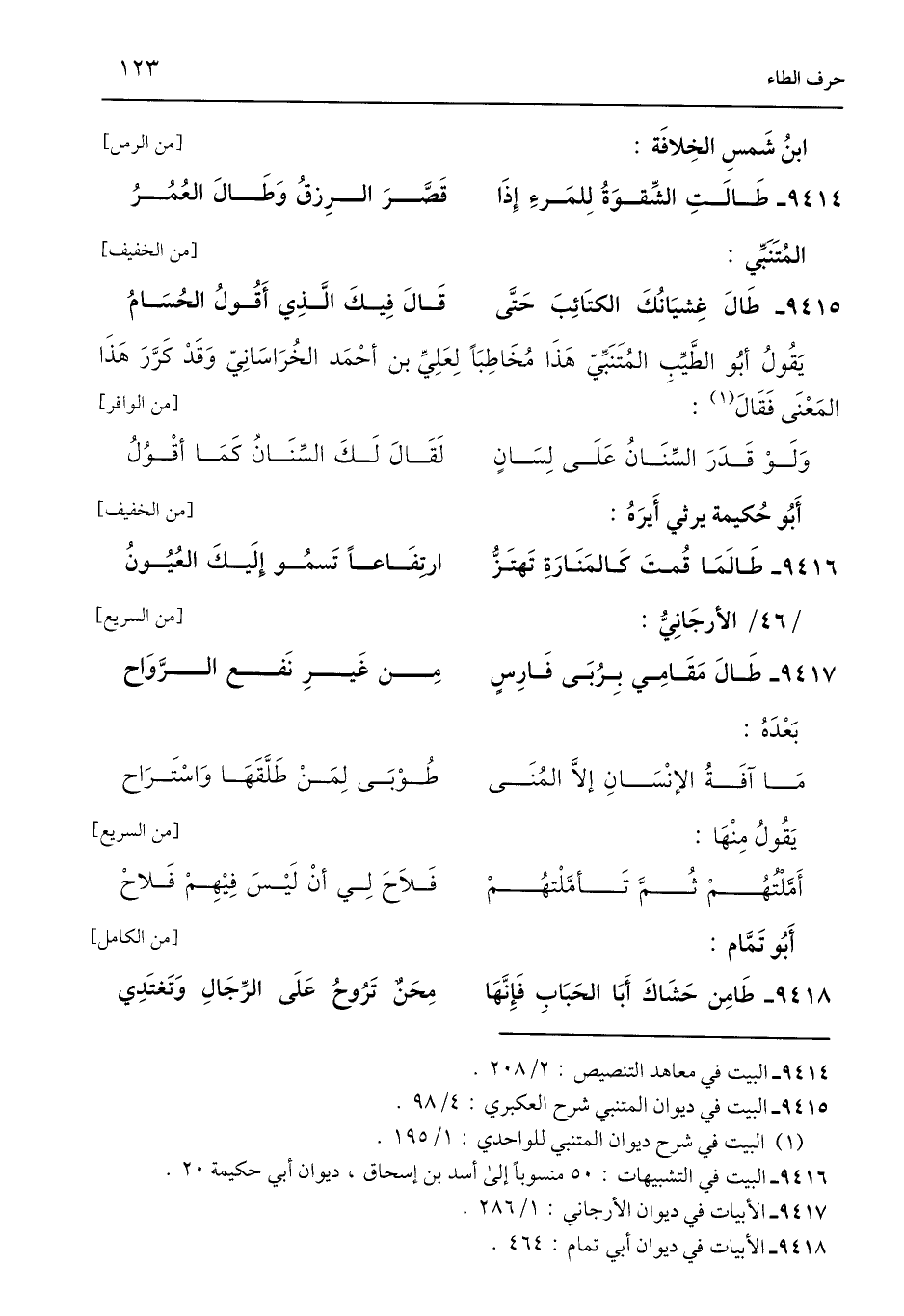 9418 - الأبيات في ديوان أبي تمام: 464.