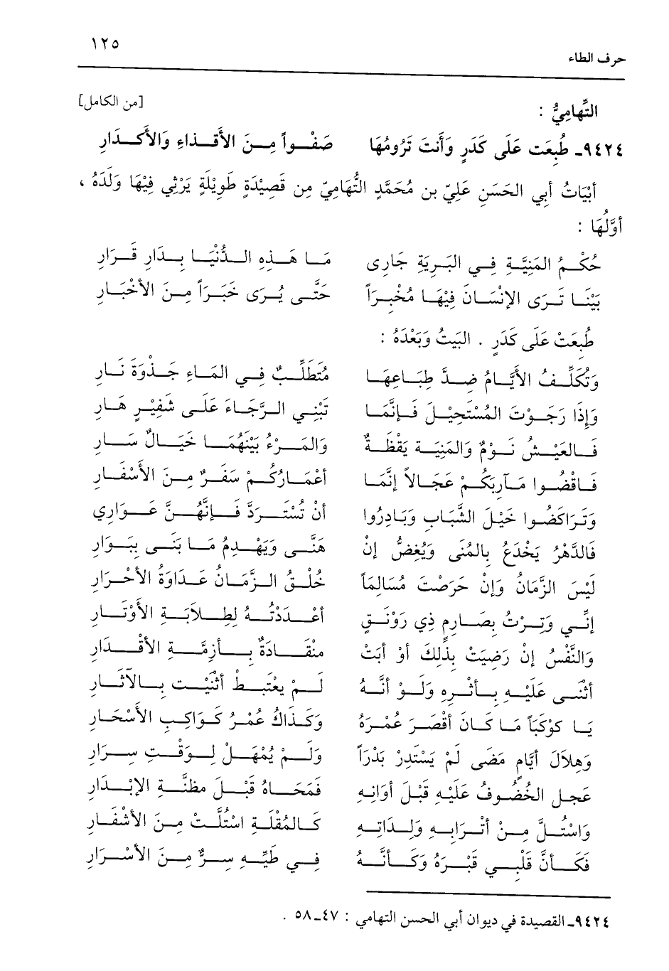 9424 - القصيدة في ديوان أبي الحسن التهامي: 47 - 58.