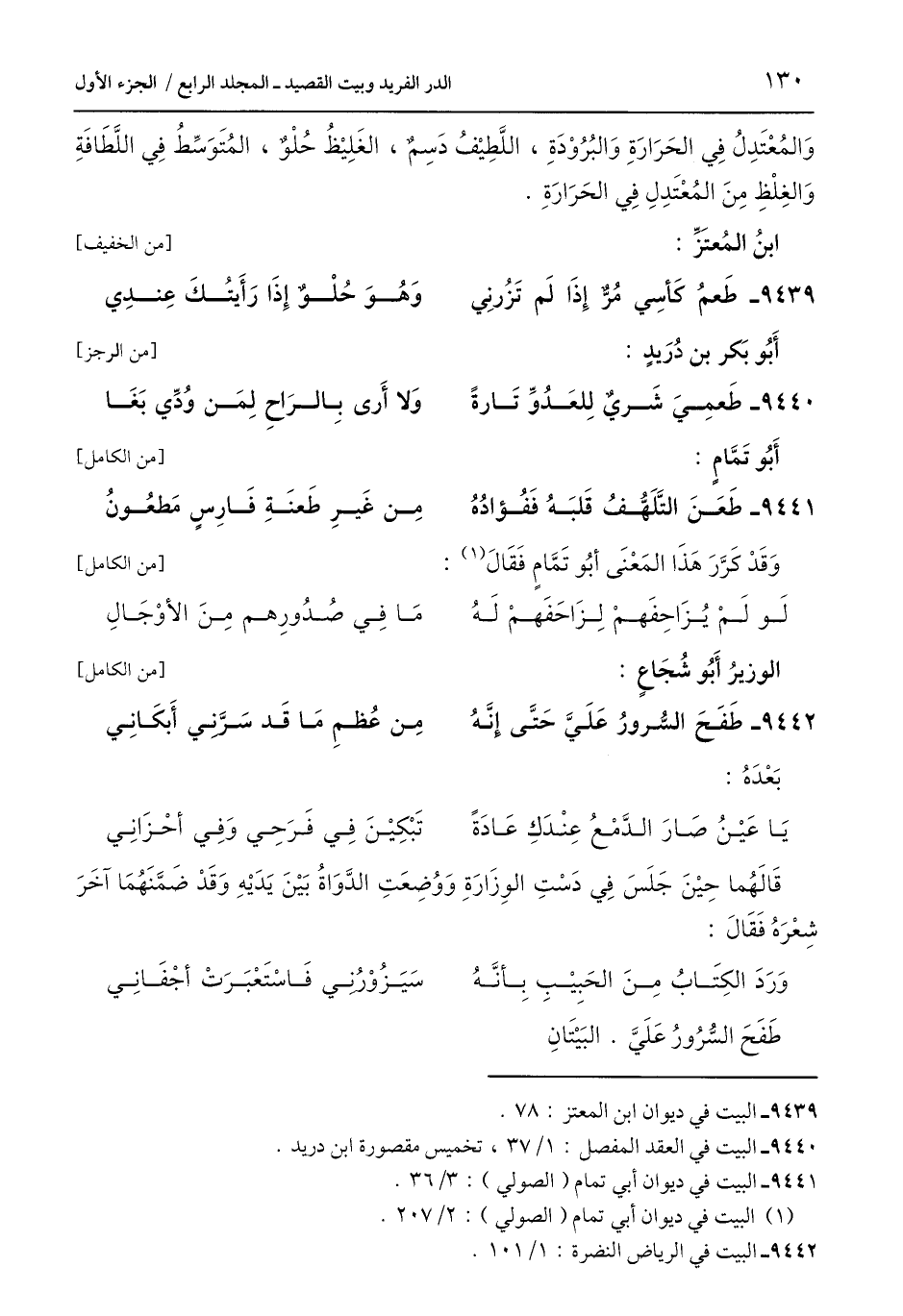 9440 - البيت في العقد المفصل: 1/ 37، تخميس مقصورة ابن دريد.
