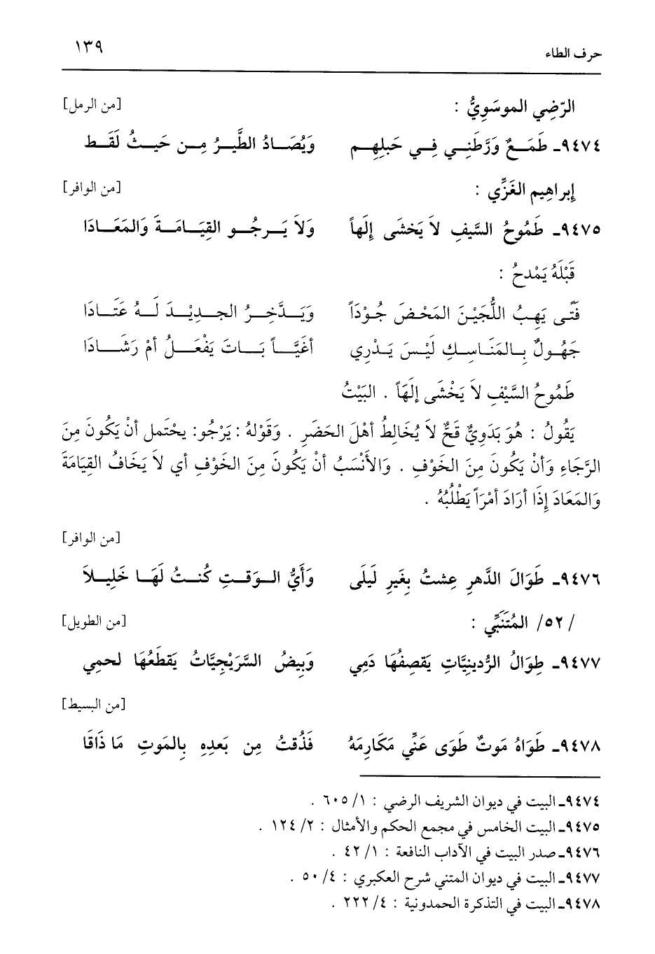 9477 - البيت في ديوان المتني شرح العكبري: 4/ 50.