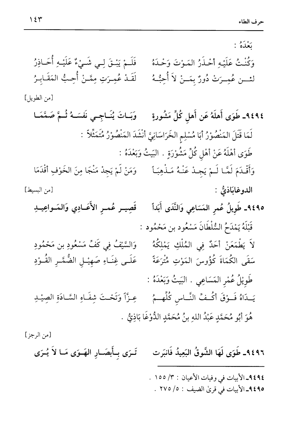 9494 - الأبيات في وفيات الأعيان: 3/ 155.