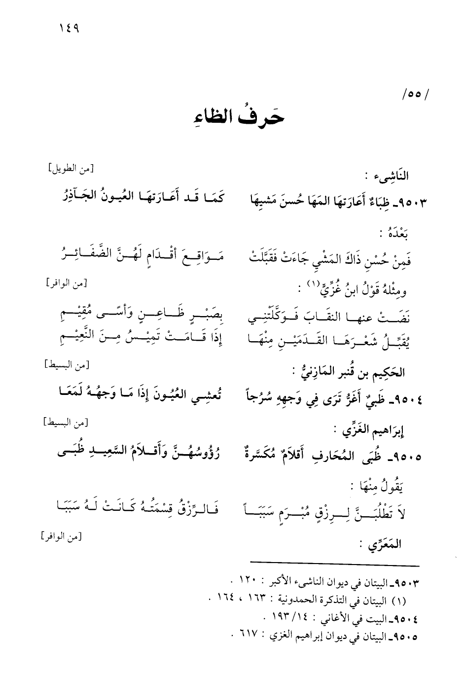 9503 - ظِبَاءٌ أَعَارَتهَا المَهَا حُسنَ مَشيِهَا ... كَمَا قَد أَعَارَتهَا العُيونُ الجَآذِرُ