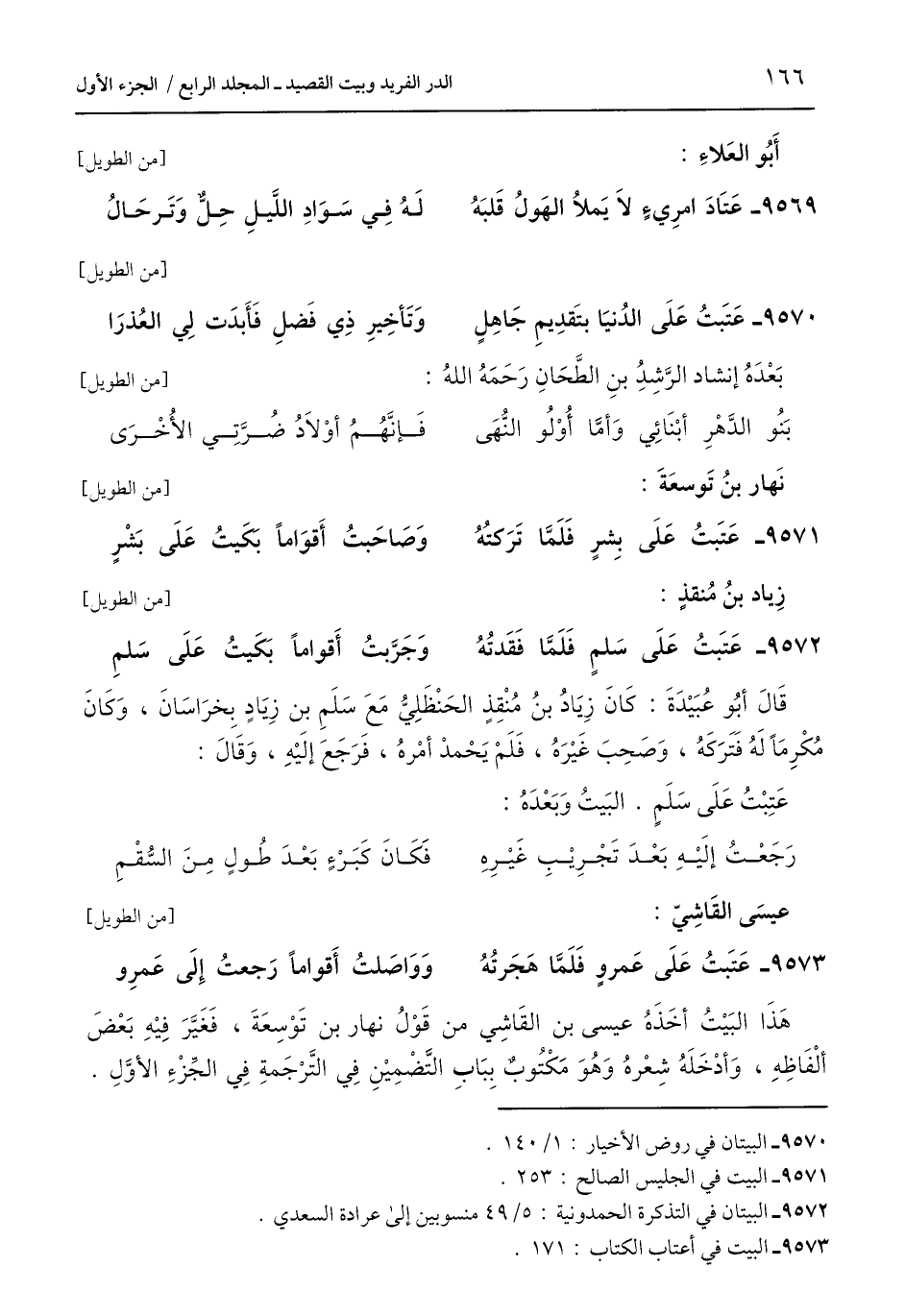 9570 - عَتَبتُ عَلَى الدُّنيَا بتَقدِيمِ جَاهِلٍ ... وَتَأخِيرِ ذِي فَضلِ فَأَبدَت لِي العُذرَا
