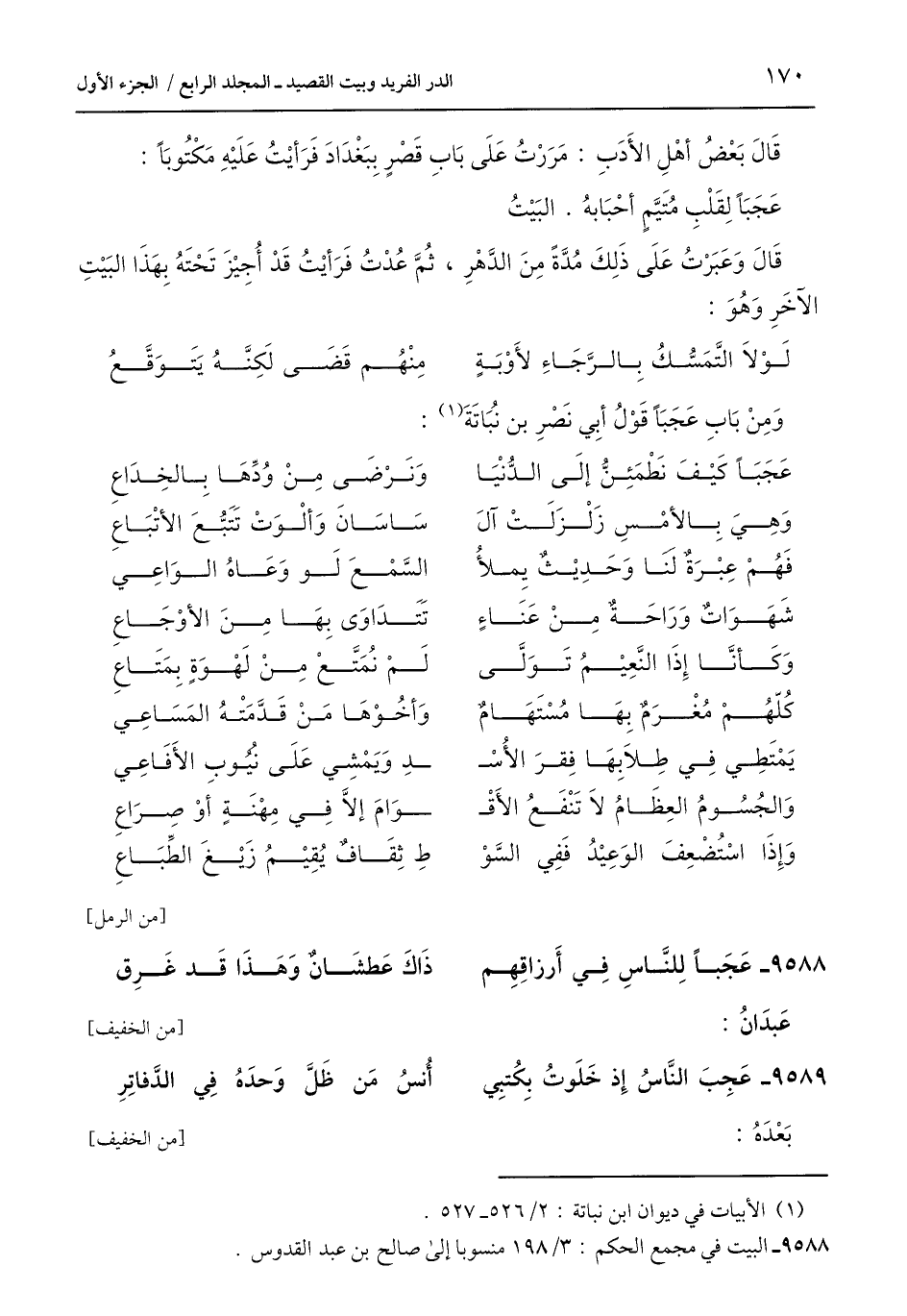 وَمِنْ بَابِ عَجَبًا قَوْلُ أَبِي نَصْرِ بن نُبَاتَةَ (¬1):