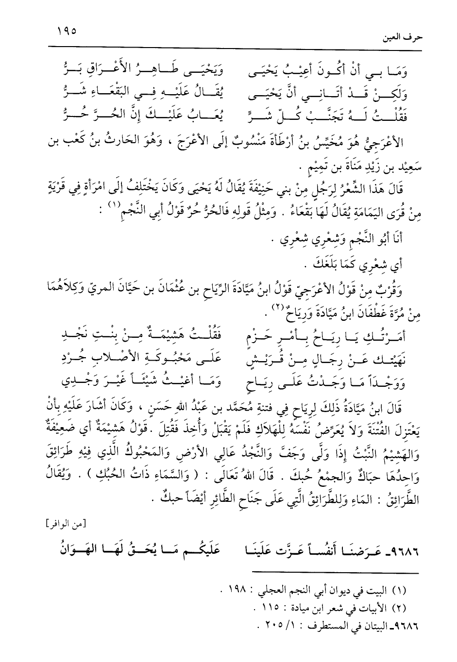 وَقُرْبٌ مِنْ قَوْلُ الأعْرَجِيّ قَوْلُ ابْنُ مَيَّادَةَ الرِّيَاحِ بن عُثْمَانَ بن حَيَّانَ المريّ وَكِلَاهُمَا مِنْ مُرَّةَ غَطْفَانَ ابْنُ مَيَّادَةَ وَرِيَاحٌ (¬2).