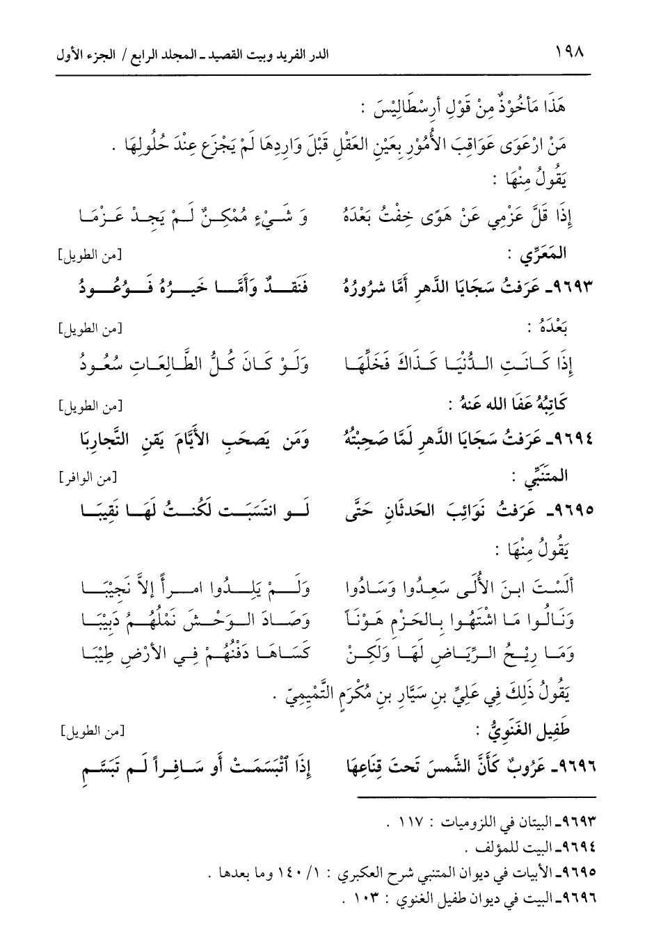 9693 - عَرَفتُ سَجَايَا الدَّهرِ أَمَّا شرُورُهُ ... فَنَقدٌ وَأَمَّا خَيرُهُ فَوُعُودُ
