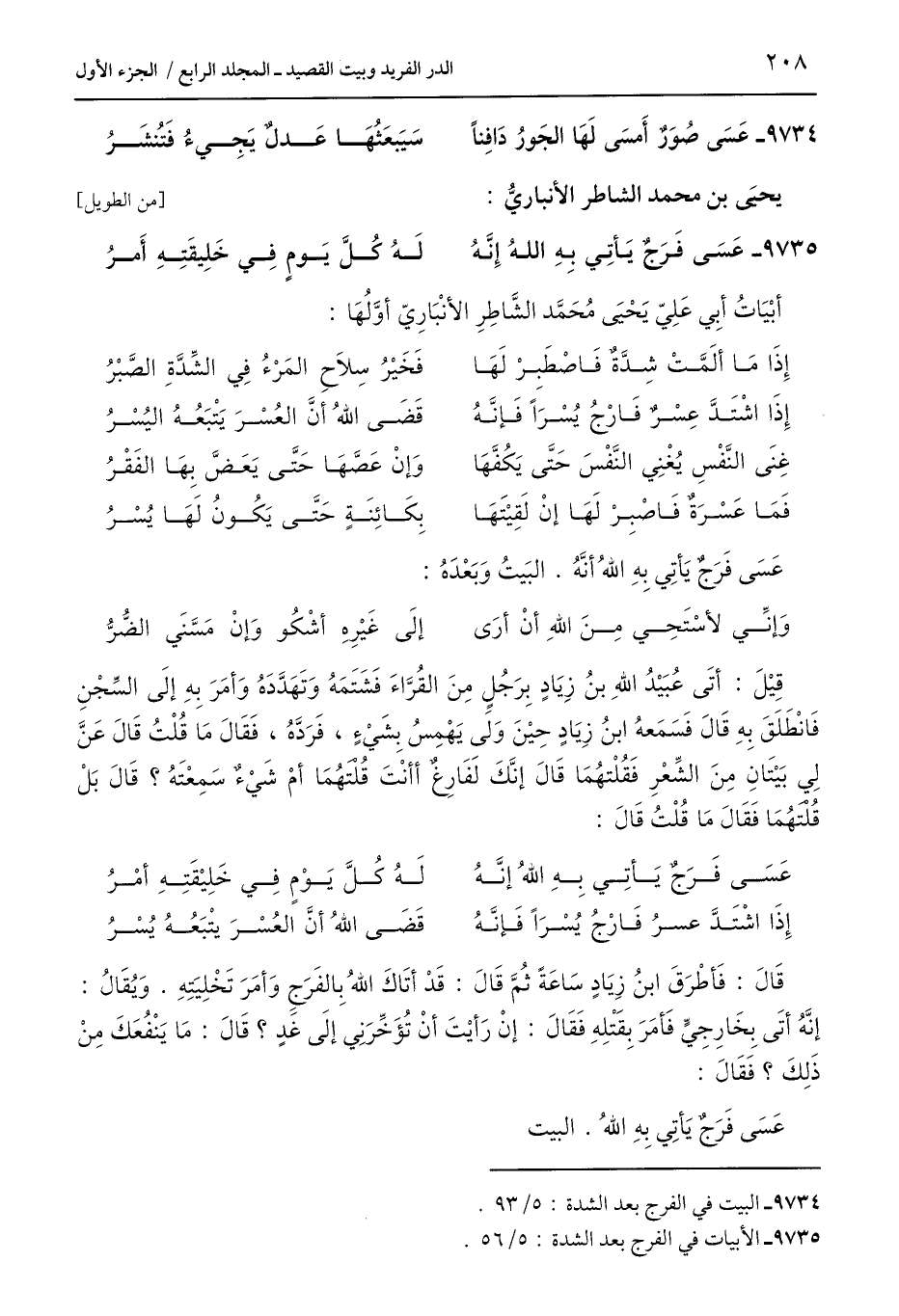 9734 - البيت في الفرج بعد الشدة: 5/ 93.