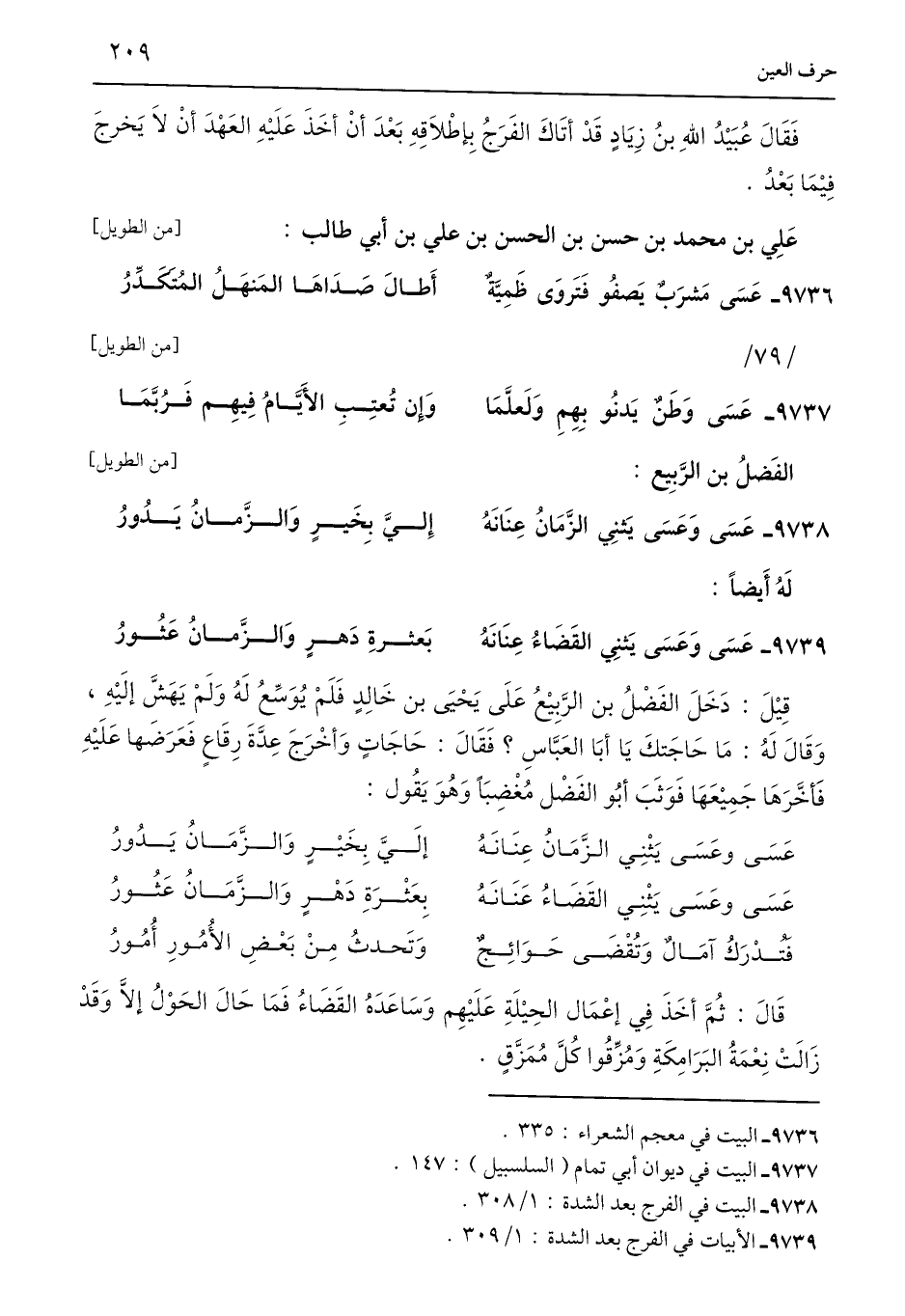 9739 - الأبيات في الفرج بعد الشدة: 1/ 309.