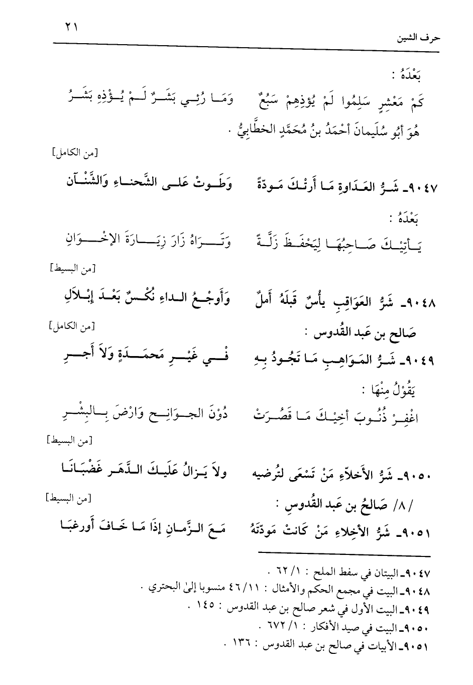 9049 - البيت الأول في شعر صالح بن عبد القدوس: 145.