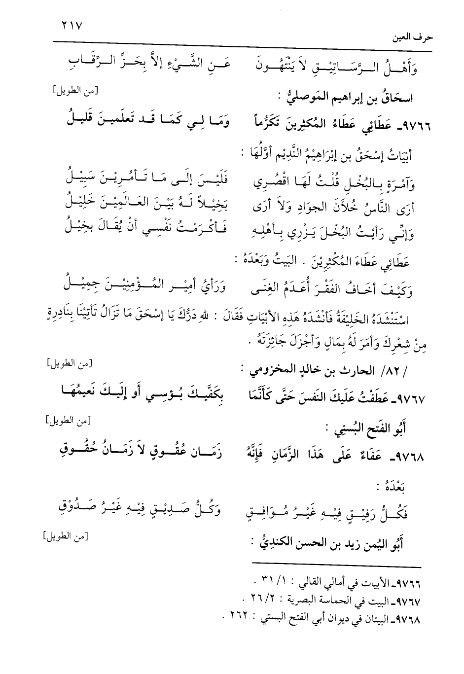 9766 - عَطَائِي عَطَاءُ المُكثِرينَ تَكَرُّمًا ... وَمَا لِي كمَا قَد تَعلَمينَ قَليلُ
