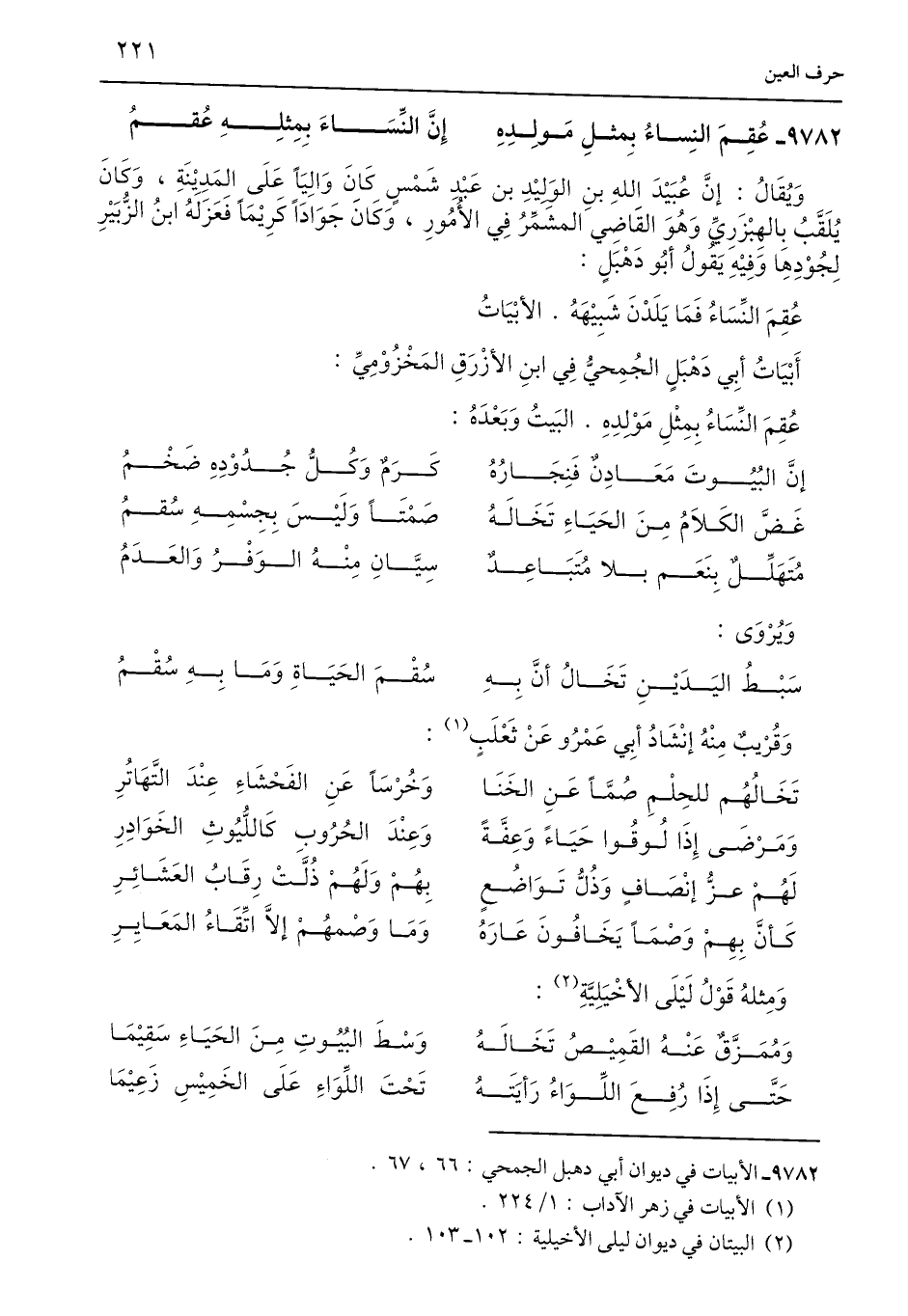 9782 - الأبيات في ديوان أبي دهبل الجمحي: 66، 67.
