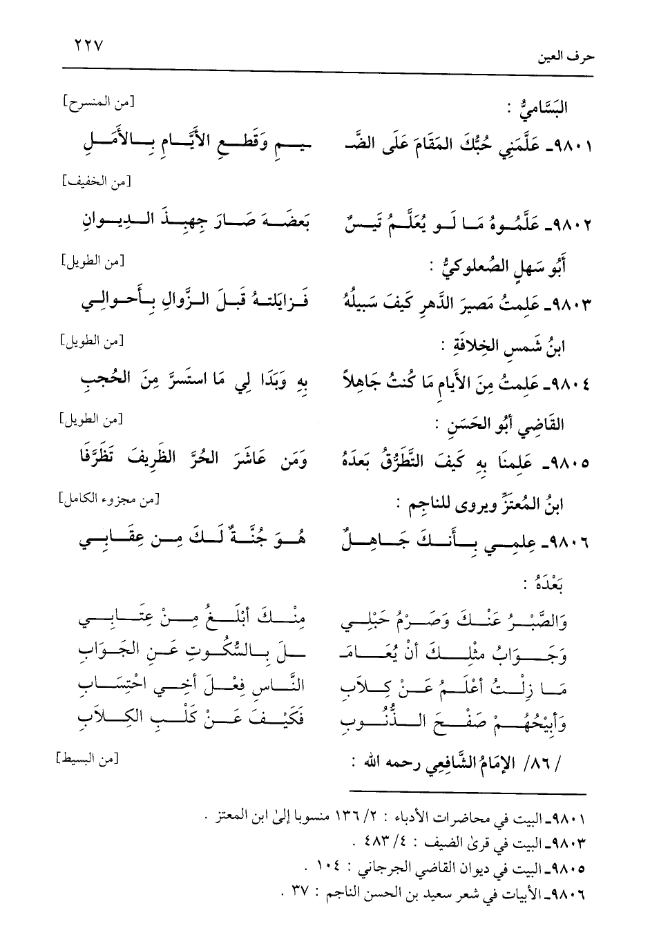 9806 - الأبيات في شعر سعيد بن الحسن الناجم: 37.