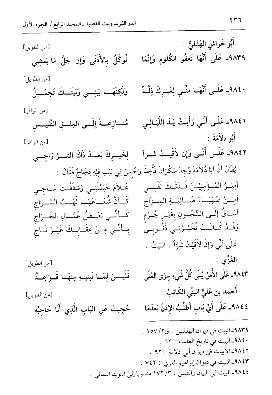 9844 - البيت في البيان والتبيين: 3/ 172 منسوبا إلى التوت اليماني.
