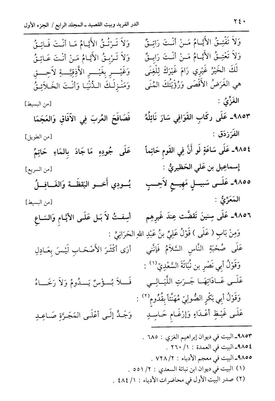 وَقَوْلُ أَبِي نَصْرِ بن نُبَاتَةَ السَّعْدِيّ (¬1):