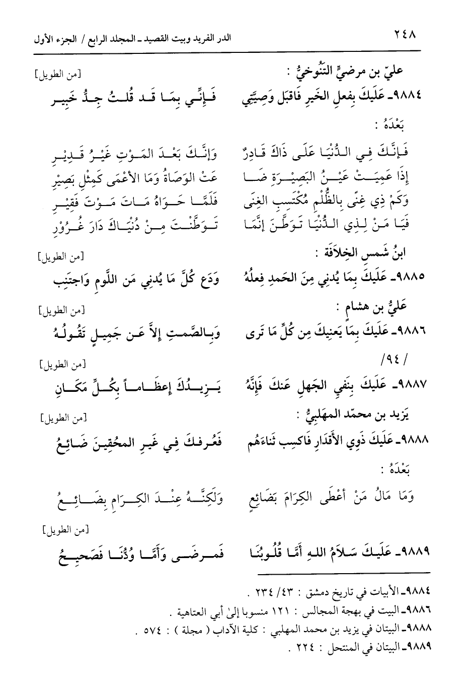 9884 - عَلَيكَ بِفعلِ الخَيرِ فَاقبَل وَصِيَّتِي ... فَإِنِّي بِمَا قَد قُلتُ جِدُّ خَبِير