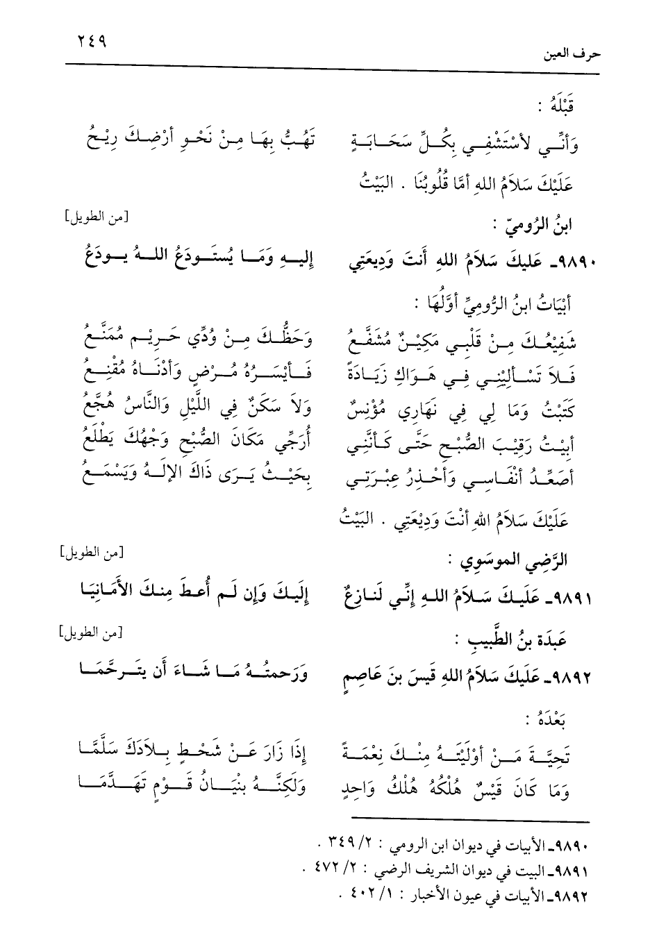 9891 - البيت في ديوان الشريف الرضي: 2/ 72.