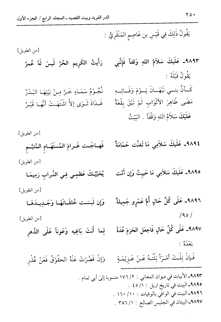 9896 - البيت في الوافي بالوفيات: 10/ 160.