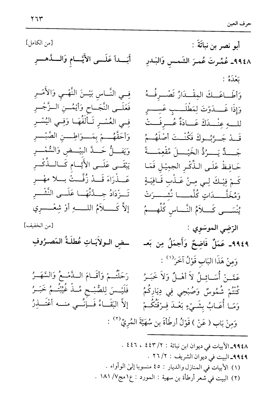 9948 - الأبيات في ديوان ابن نباتة: 2/ 443، 446.