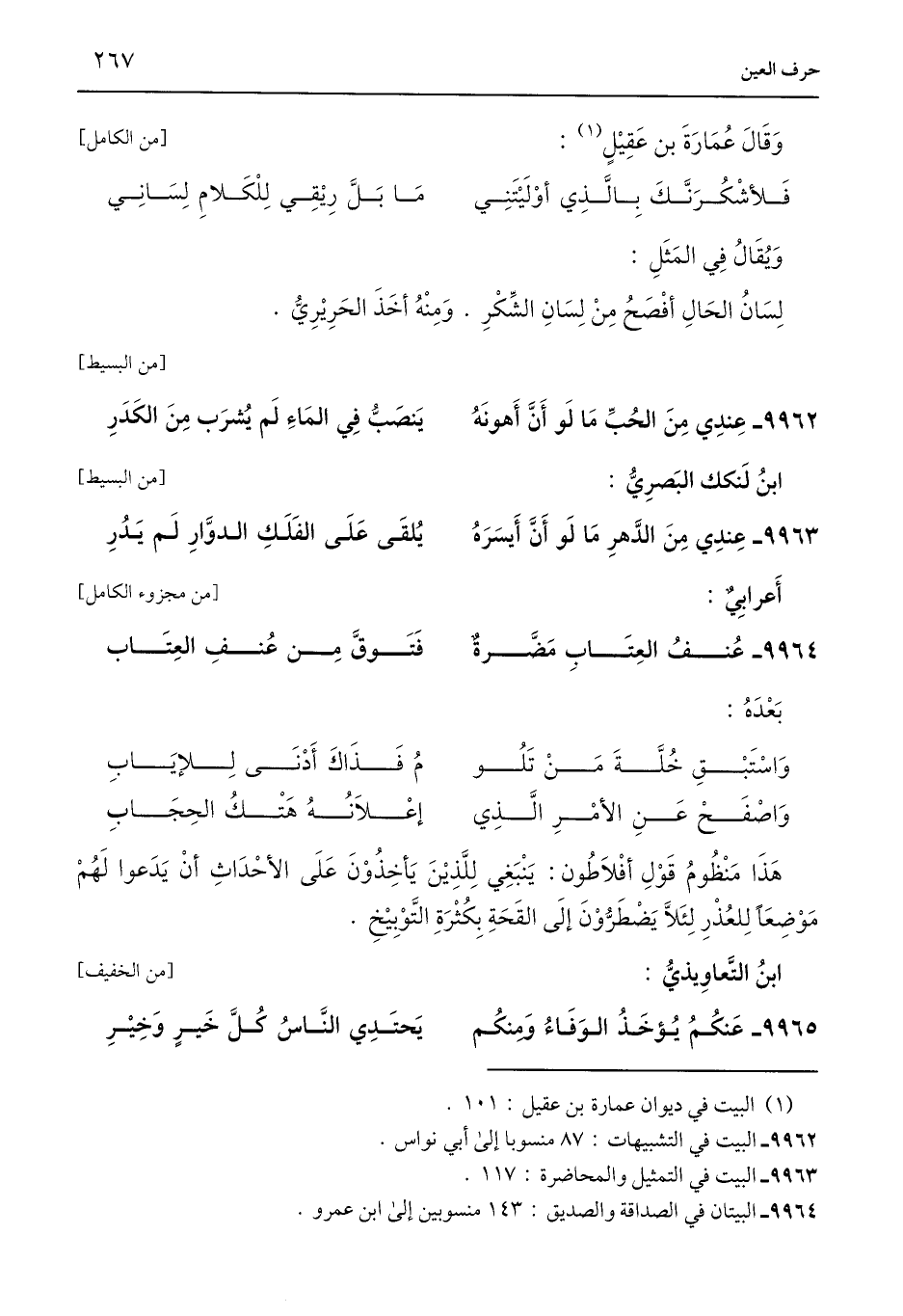 9964 - البيتان في الصداقة والصديق: 143 منسوبين إلى ابن عمرو.
