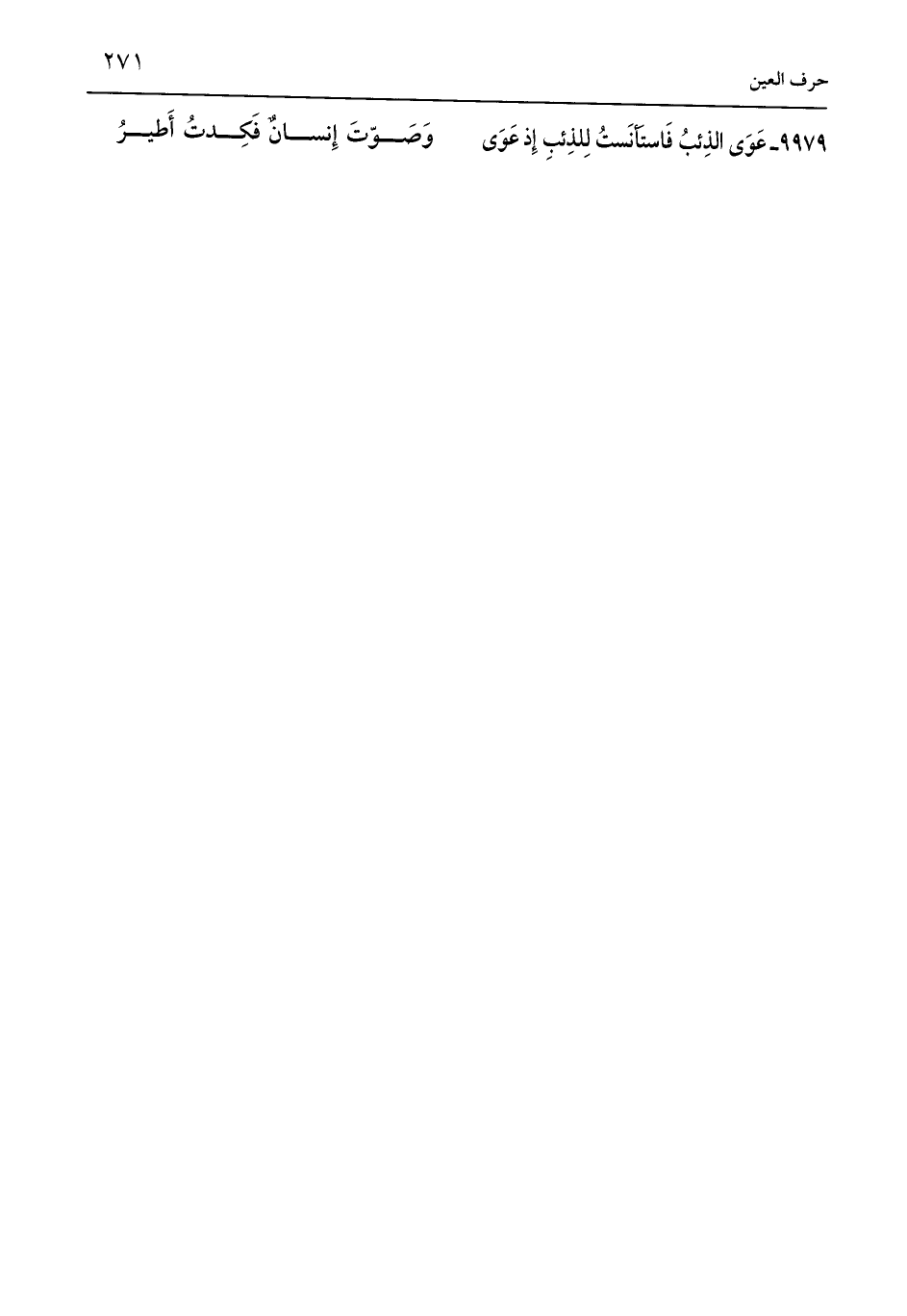 9979 - عَوَى الذِئبُ فَاستَأنَستُ لِلذِئبِ إِذ عَوَى ... وَصَوّتَ إِنسانٌ فَكِدتُ أَطيرُ