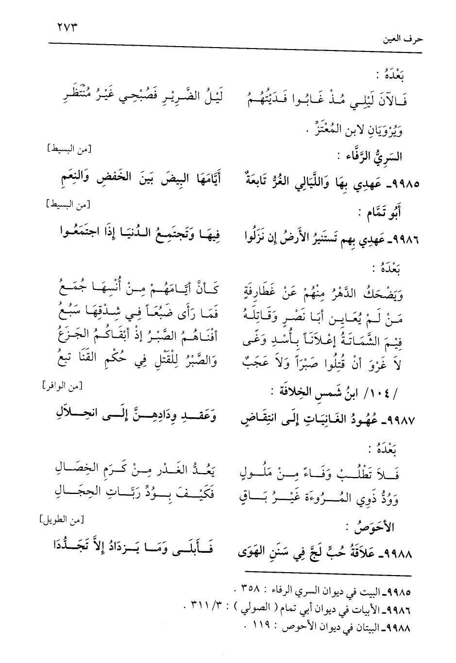 9985 - البيت في ديوان السري الرفاء: 358.