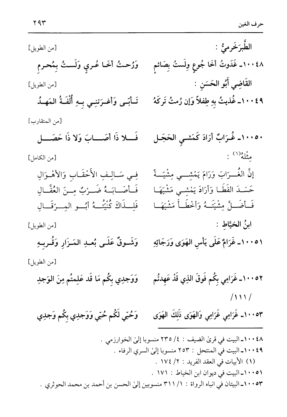 10049 - البيت في المنتحل: 253 منسوبا إلى السري الرفاء.