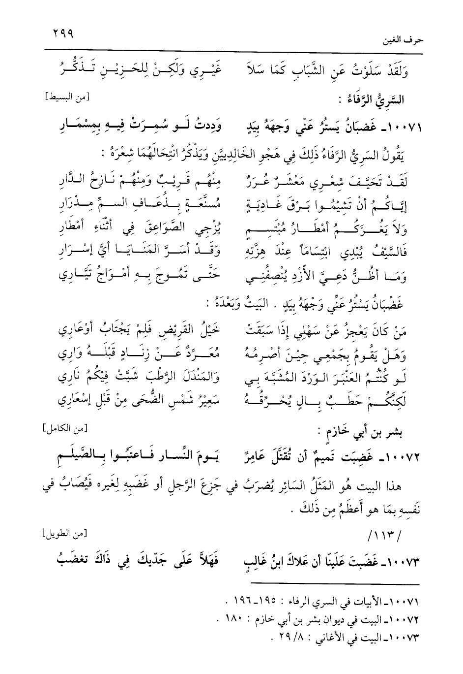 10071 - الأبيات في السري الرفاء: 195 - 196.