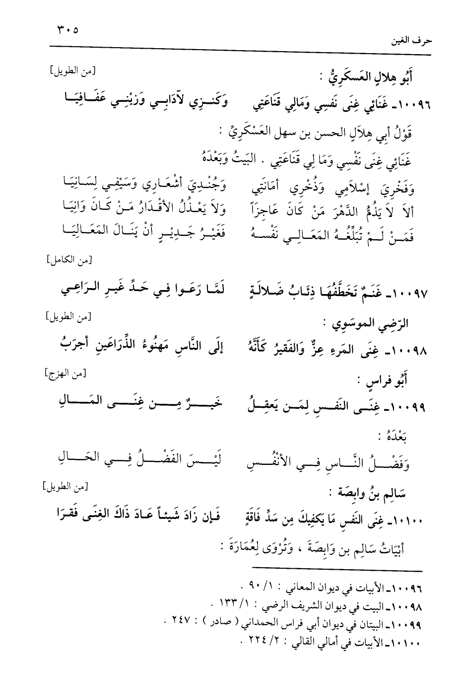 10096 - غَنَائي غِنَى نَفسِي وَمَالِي قَنَاعَتِي ... وَكَنزِي لآدَابِي وَزيْنِي عَفَافِيَا