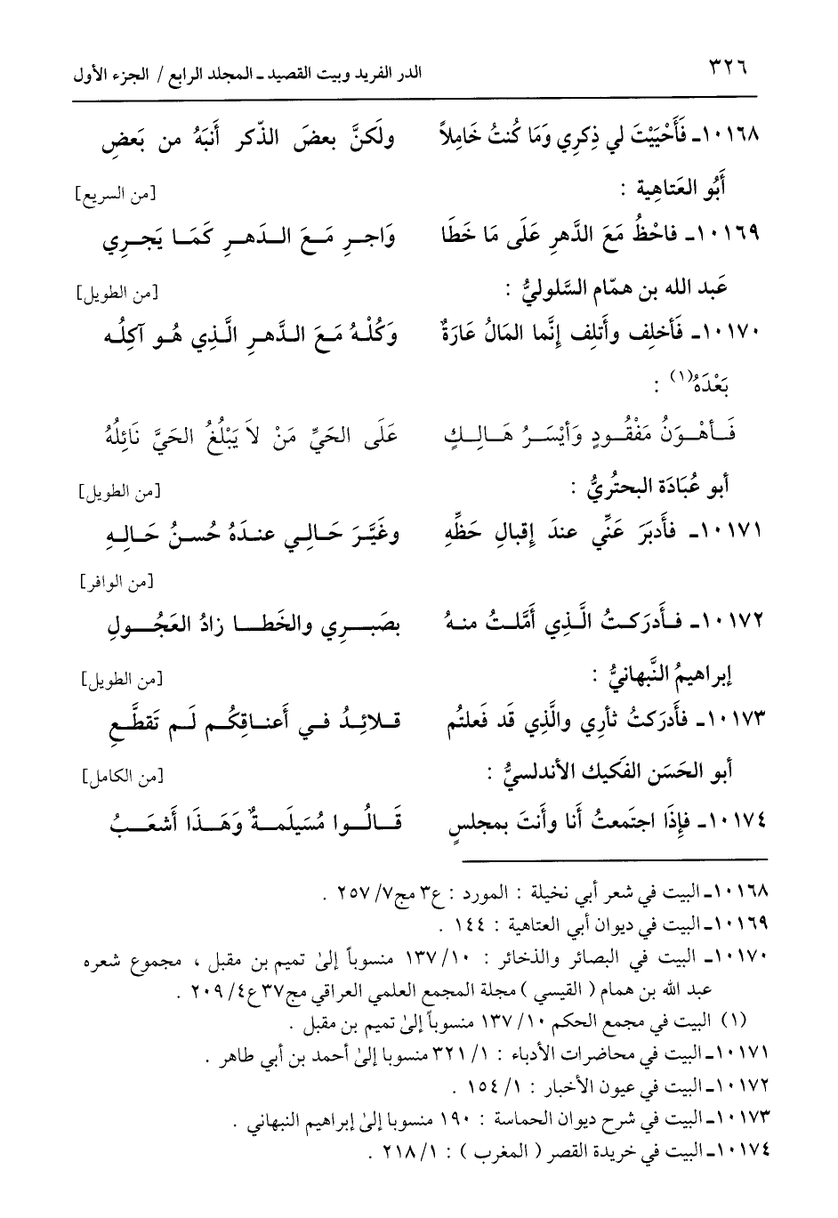 10173 - البيت في شرح ديوان الحماسة: 190 منسوبا إلى إبراهيم النبهاني.