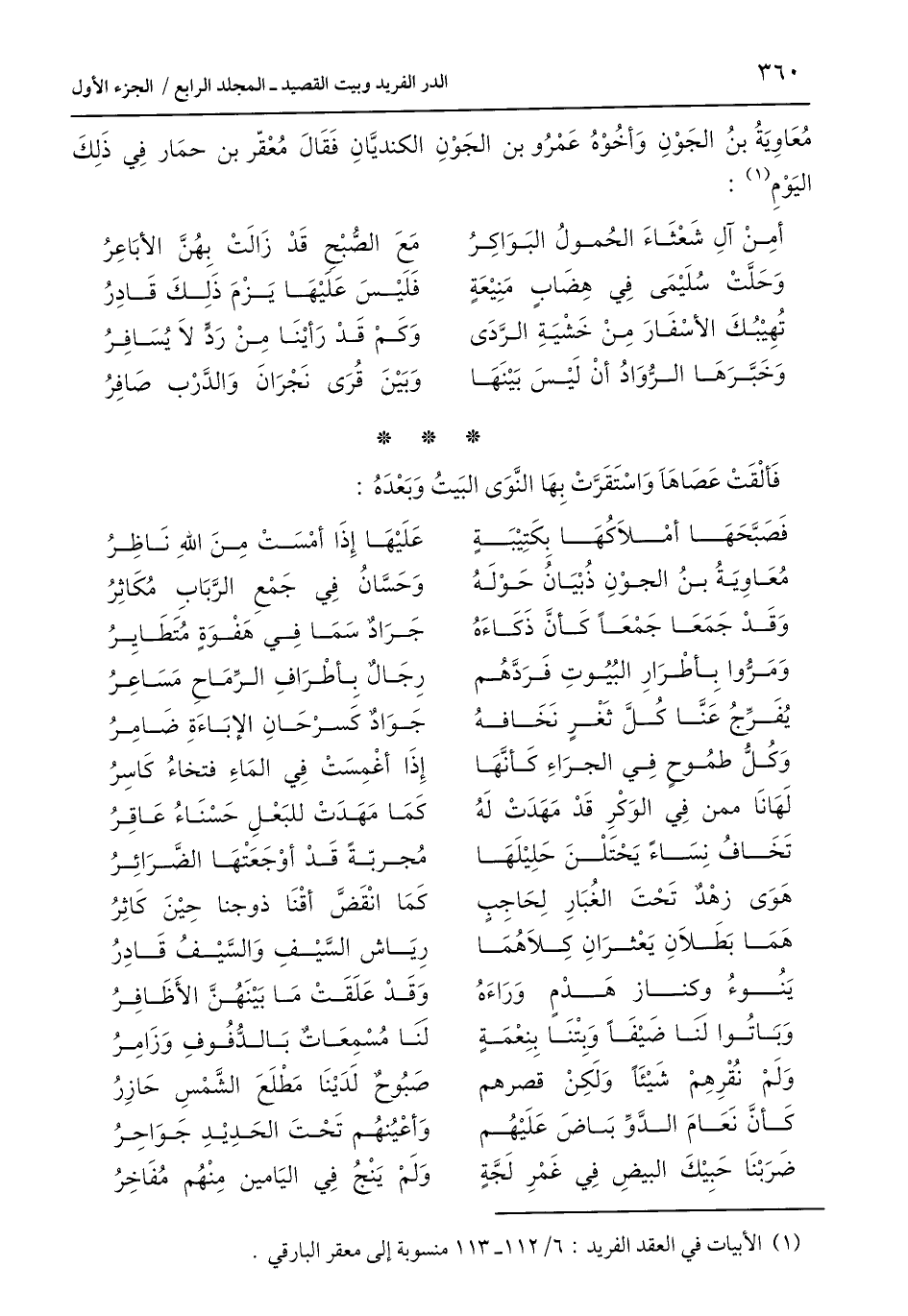 (¬1) الأبيات في العقد الفريد: 6/ 112 - 113 منسوبة إلى معقر البارقي.