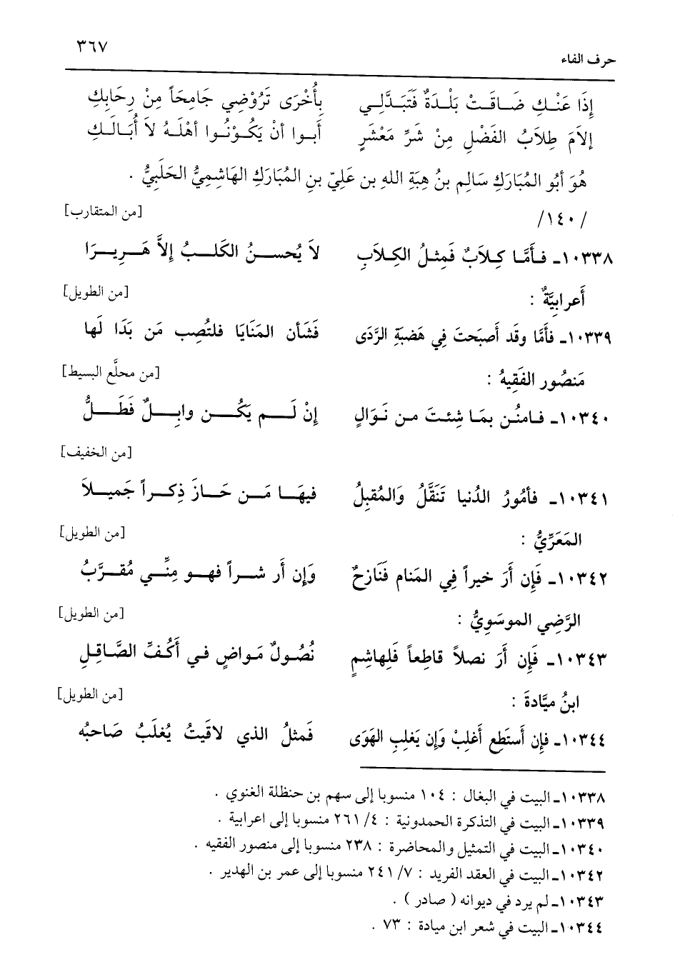 10340 - البيت في التمثيل والمحاضرة: 238 منسوبا إلى منصور الفقيه.