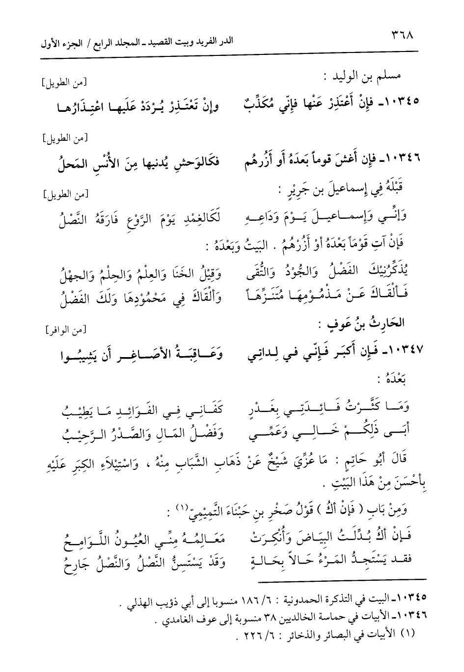 10346 - الأبيات في حماسة الخالديين 38 منسوبة إلى عوف الغامدي.