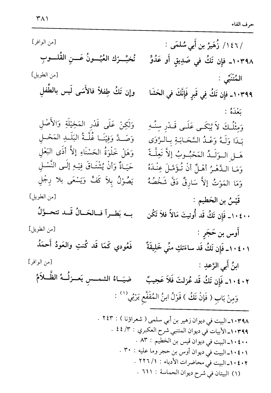 10398 - البيت في ديوان زهير بن أبي سلمى (شعراؤنا): 243.