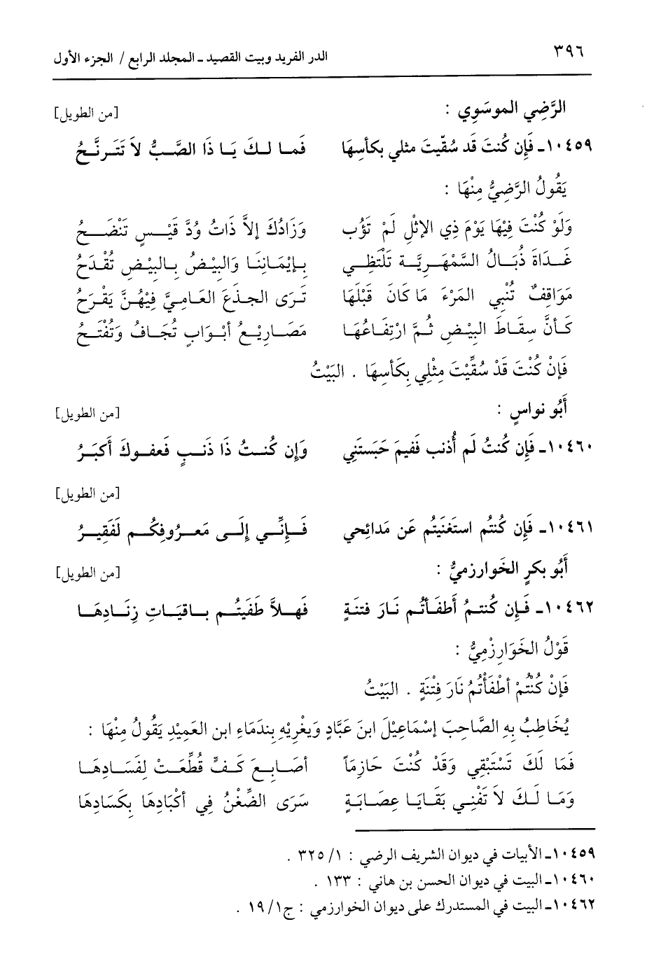 10459 - الأبيات في ديوان الشريف الرضي: 1/ 325.