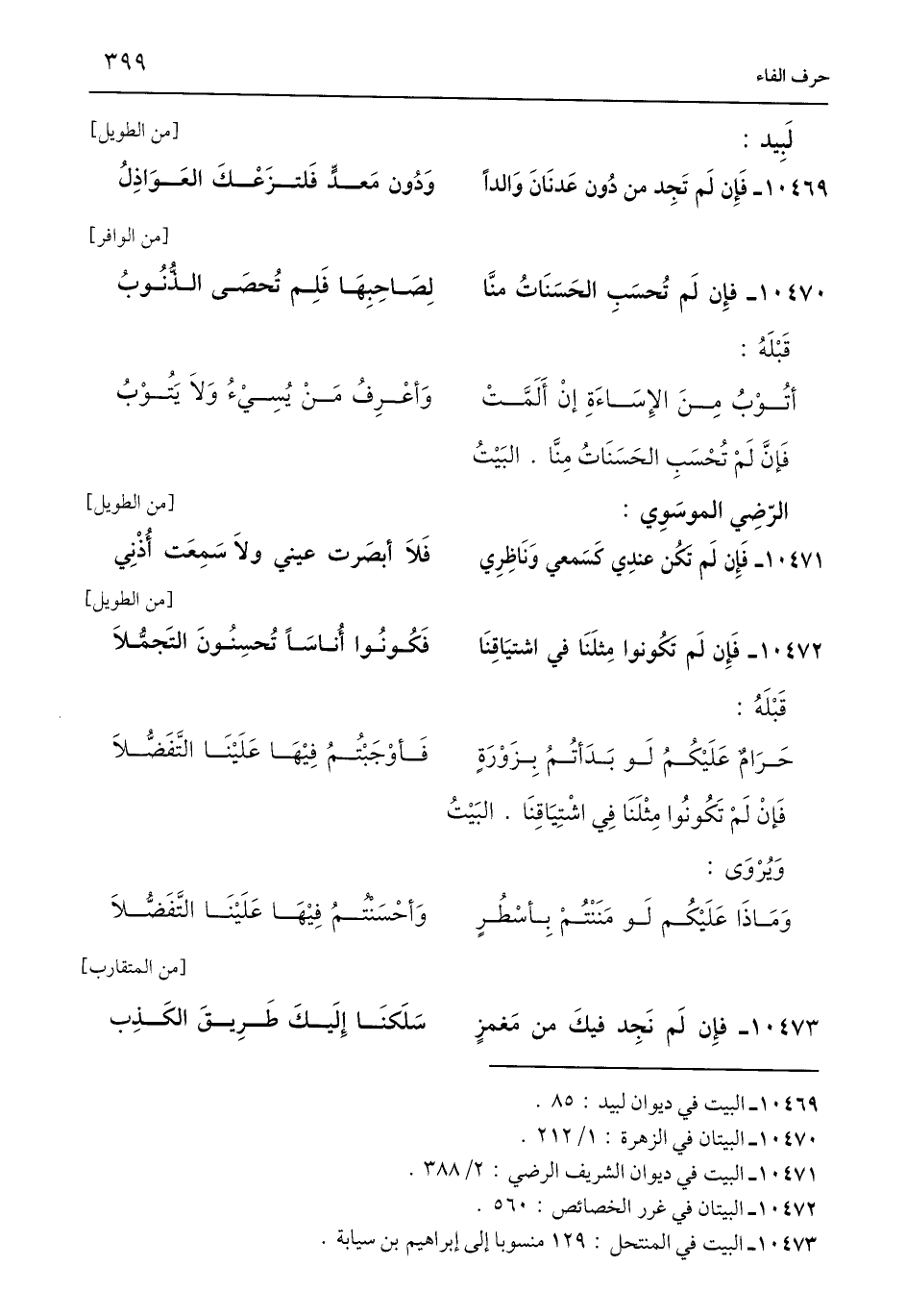 10473 - البيت في المنتحل: 129 منسوبا إلى إبراهيم بن سيابة.