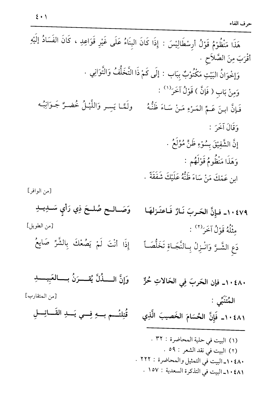 10479 - فإِنَّ الحَربَ نَارٌ فَاعتَزلهَا ... وَصَالح صُلحَ ذِي رَأيٍ سَدِيدِ