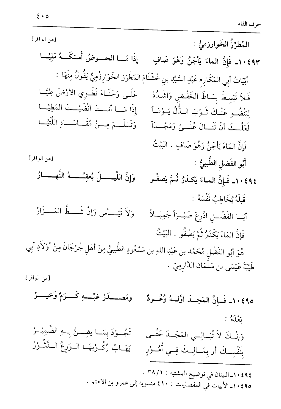 10495 - الأبيات في المفضليات: 410 منسوبة إلى عمرو بن الاهتم.