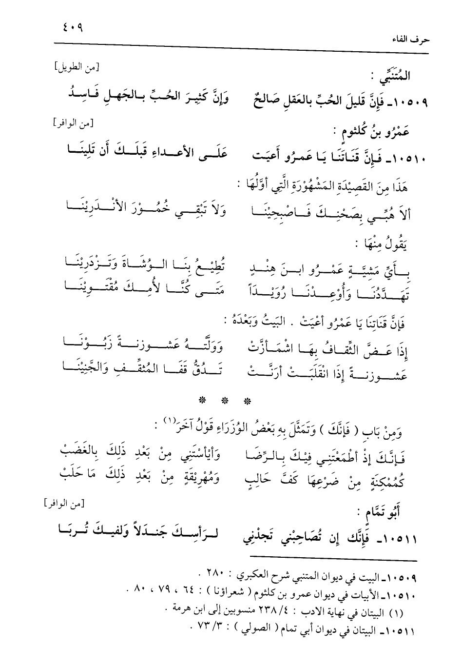 10509 - البيت في ديوان المتنبي شرح العكبري: 280.